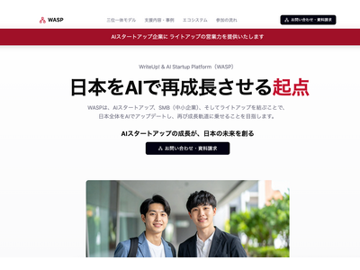 株式会社ライトアップ(証券コード 6580)は、AIスタートアップの成長を加速させるための新プラットフォーム「WASP(WriteUp! & AI Startup Platform)」を正式に始動いたします。