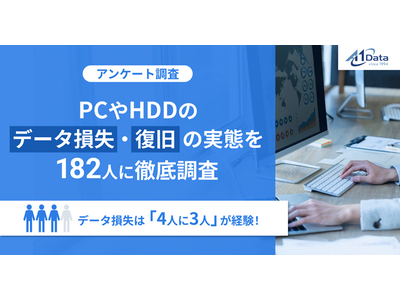 エーワンデータ株式会社(本社:埼玉県飯能市、代表取締役:本田 正)は、全国の20~60代以上の男女182人を対象に、データ損失の経験や復旧の実態などについてアンケート調査を実施いたしました。