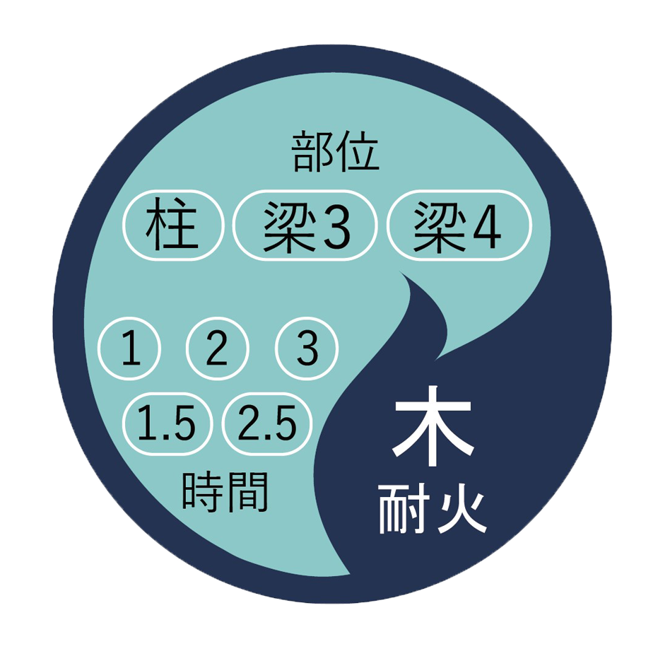 ※使用方法:現場で使用される木質耐火部材の「部位」、「耐火時間」を〇印で囲みます。