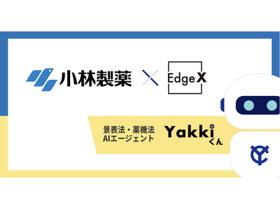 株式会社EdgeX(本社:東京都中央区、代表取締役社長:高村健一、以下「EdgeX」)は、小林製薬株式会社(本社:大阪市中央区、代表取締役社長:豊田賀一、以下「小林製薬」)と共同で、不当景品類及び不当表示防止法(以下「景表法」)・医薬品、医療機器等の品質、有効性及び安全性の確保等に関する法律(以下「薬機法」)のチェック業務効率化を目的としたAIエージェント「ヤッキくん」を開発しました。本システムは、小林製薬が取り扱う日用雑貨品、スキンケア製品などの製品パッケージ/ブランドサイト/店頭POP/CMの説明文を通達・ガイドラインや、自社ルールに基づいてAIでチェックし、業務の効率化と品質の向上を同時に実現することを目的としています。