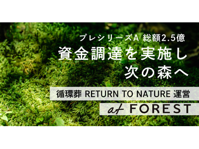 人と自然にやさしい循環葬(R)︎「RETURN TO NATURE」を監修するat FOREST株式会社(本社:兵庫県神戸市、代表取締役:小池友紀、以下:at FOREST)は、プレシリーズAラウンドにてアニマルスピリッツ合同会社をリード投資家として2.5億円を調達いたしました。融資と合わせた累計調達額は3億900万円となります。