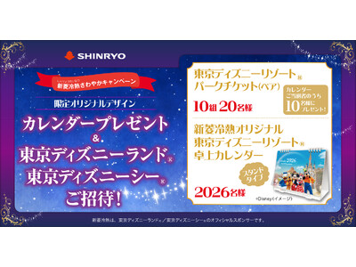 新菱冷熱工業株式会社は、2025年10月21日~2025年12月5日、2026名様に“新菱冷熱オリジナル東京ディズニーリゾート(R)卓上カレンダー”が、カレンダー当選者の中から抽選で10組20名様に“東京ディズニーリゾート(R)・パークチケット(ペア)”が当たるオープンキャンペーンを開催いたします。