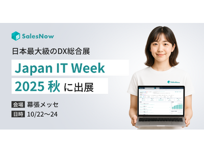 株式会社SalesNow(本社:東京都渋谷区、代表取締役:村岡功規、以下「当社」)が提供する「SalesNow」 は、2025年10月22日(水) ~24日(金)に開催するRX Japan株式会社(本社:東京都中央区、代表取締役:田中 岳志、以下「RX Japan」)が主催するオフライン展示会「Japan IT Week 秋 2025」に出展します。