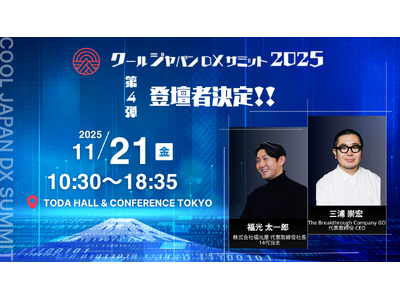 クールジャパンDXサミット実行委員会(運営事務局:Vpon、本社:東京都渋谷区、代表取締役社長:篠原 好孝)は、2025年11月21日(金)に開催する「クールジャパンDXサミット2025」の第四弾、豪華登壇者をご紹介します。