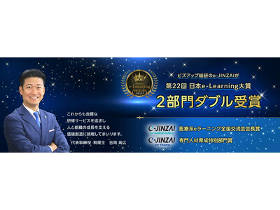 株式会社ビズアップ総研(本社:東京都港区、代表取締役:吉岡高広)の提供するWEB研修システム「e-JINZAI for medical welfare」と「e-JINZAI for finance」が、第22回日本e-Learning大賞において、「医療系eラーニング全国交流会会長賞」と「専門人材育成特別部門賞」の2部門でダブル受賞するという快挙を達成したことをお知らせいたします。
