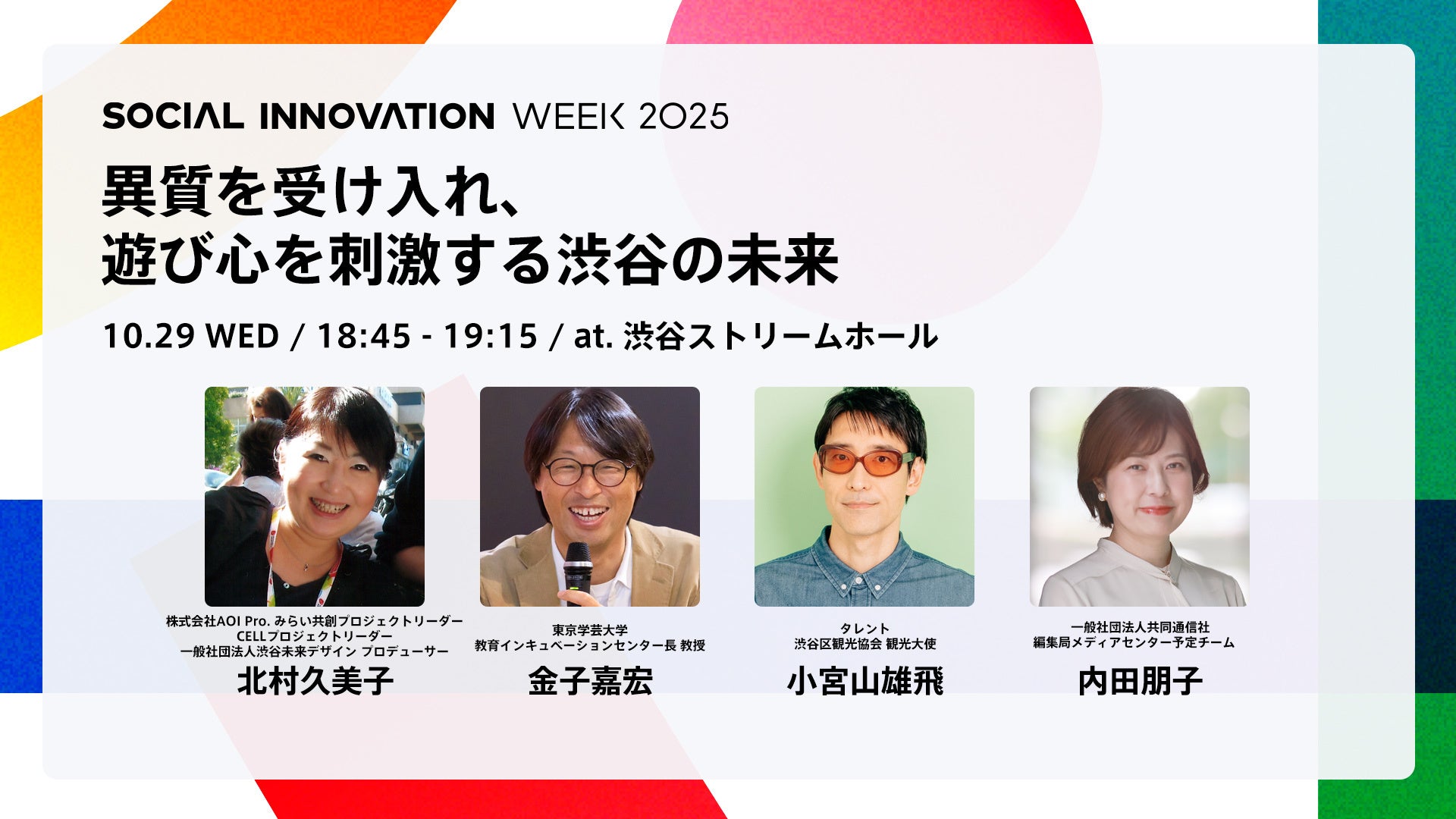一般社団法人渋谷未来デザイン(代表理事:小泉秀樹、以下渋谷未来デザイン)は、多様なアイデアと社会の未来をつなぐ出会いの場を創出し、渋谷から新たな文化・産業を生み出す「SOCIAL INNOVATION WEEK 2025(以下、SIW)」を2025年10月27日(月)~11月3日(月)に開催します。SIWは、社会の課題解決とより良い未来の創造を目指し、2018年より多様な連携とアイデア創出を通じて開催して、今年で8回目を迎えます。過去には、この場から様々な革新的なプロジェクトが生まれています。