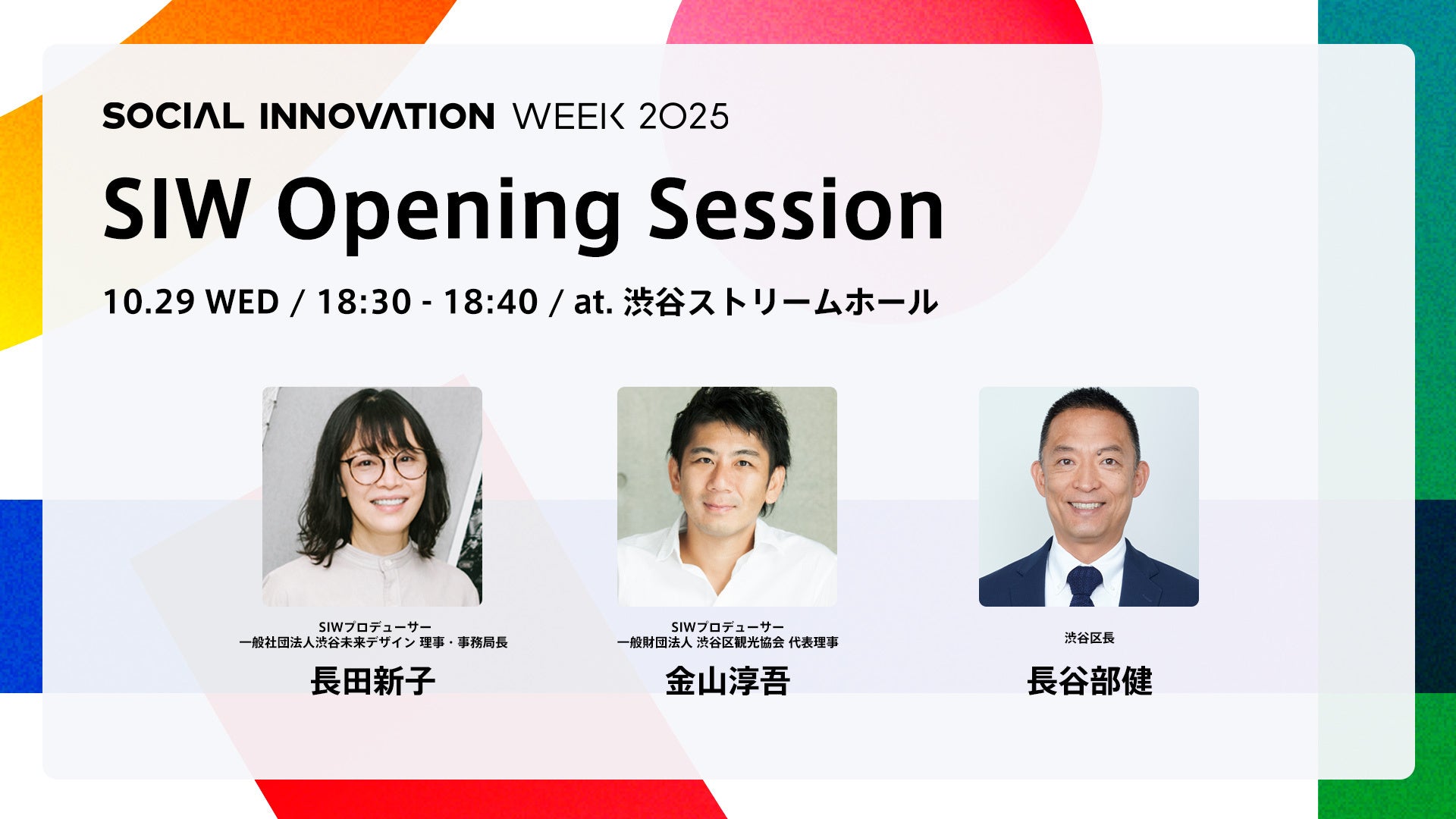 SOCIAL INNOVATION WEEK(SIW)2025の開幕を告げるオープニングセッションでは、本年の開催テーマやタグライン、見どころを紹介し、来場者の皆さまにSIWの全体像をお伝えします。行政・企業・クリエイター・市民が一堂に会し、「より良い未来へのシフト」を目指す都市型フェスティバルの幕開けとして、渋谷から世界へ発信する最新の社会的潮流と共創の可能性を提示します。