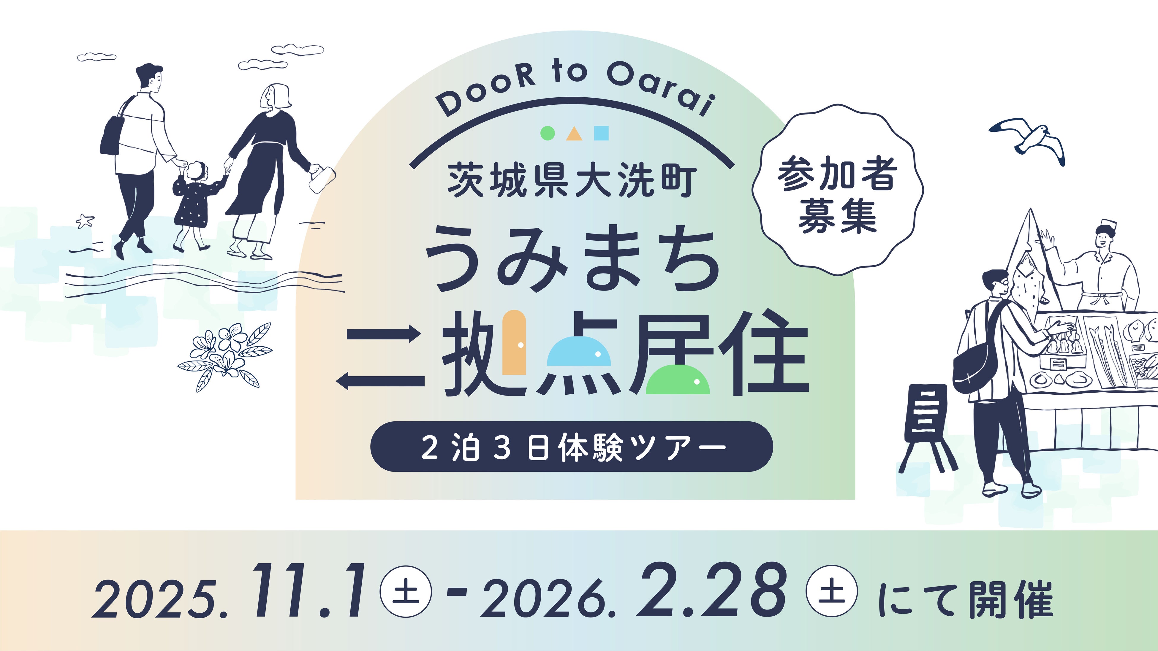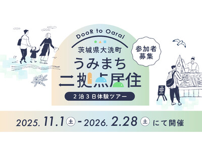 大洗町(企画運営:一般社団法人Local Quest Lab)は、今住んでいる地域ともう一つ別の地域に暮らしを持つ「二拠点居住」の体験ツアーを2025年11月~2026年2月までの期間で開催します。開催にあたり、都市圏等に住み二拠点居住に興味がある方や海のあるまちで暮らしたい方など、計4組の参加者を募集します。