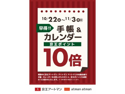 京王グループでコスメを中心に生活雑貨を販売する株式会社京王アートマン(本社:東京都多摩市、以下 京王アートマン)は、2025年10月22日(水)から2025年11月3日(月祝)まで京王アートマン・アートマン アートマンの対象店舗にて「手帳&カレンダー 京王ポイント