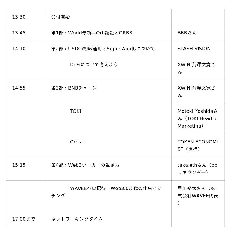 Web3の「学び」と「実践」をテーマに、初心者から上級者までが最新情報を得られる「OrbsCafe」は、この度「ちょっと早い年末スペシャル」として、Orb認証やSlash Cardデモ、WAVEE登録などの体験コンテンツも交え、豪華講師陣が一堂に会します。