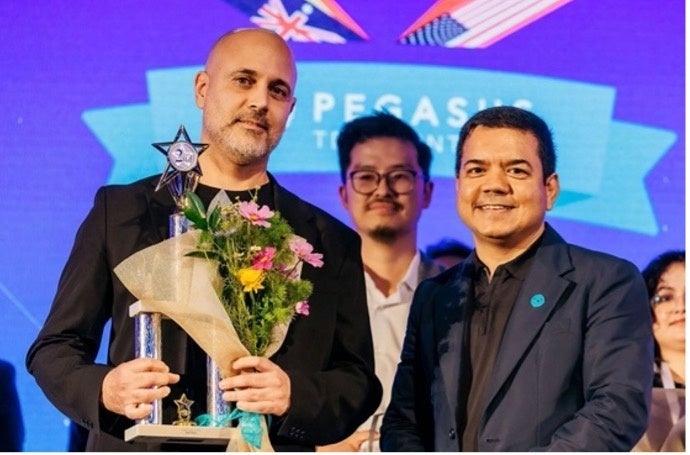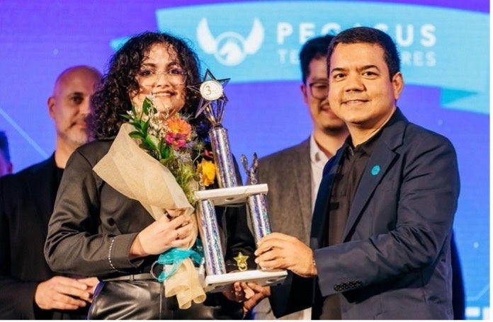 優勝したCoreshell社(左から5人目)、主催であるペガサス・テック・ベンチャーズ創業者兼CEOのアニス・ウッザマン(左から4人目)、他