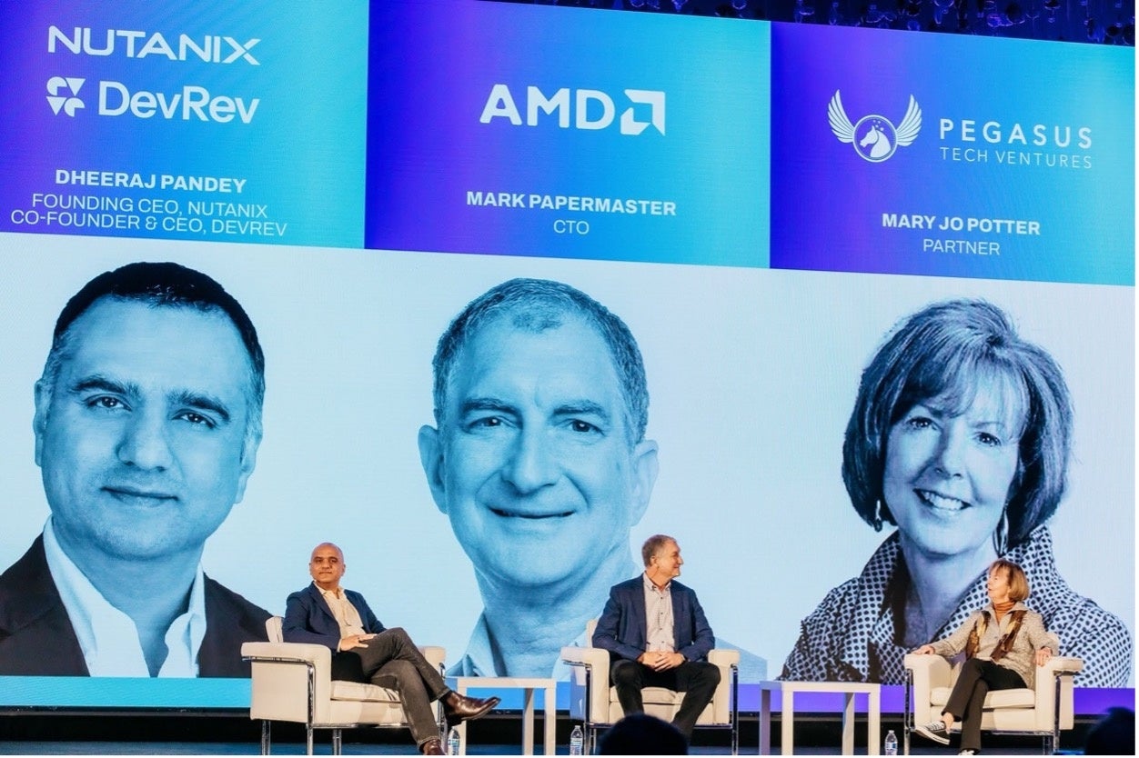 左からNUTANIX社の元創業者兼CEOのディラージ・パンディ、AMD社CTOのマーク・ペーパーマスター氏