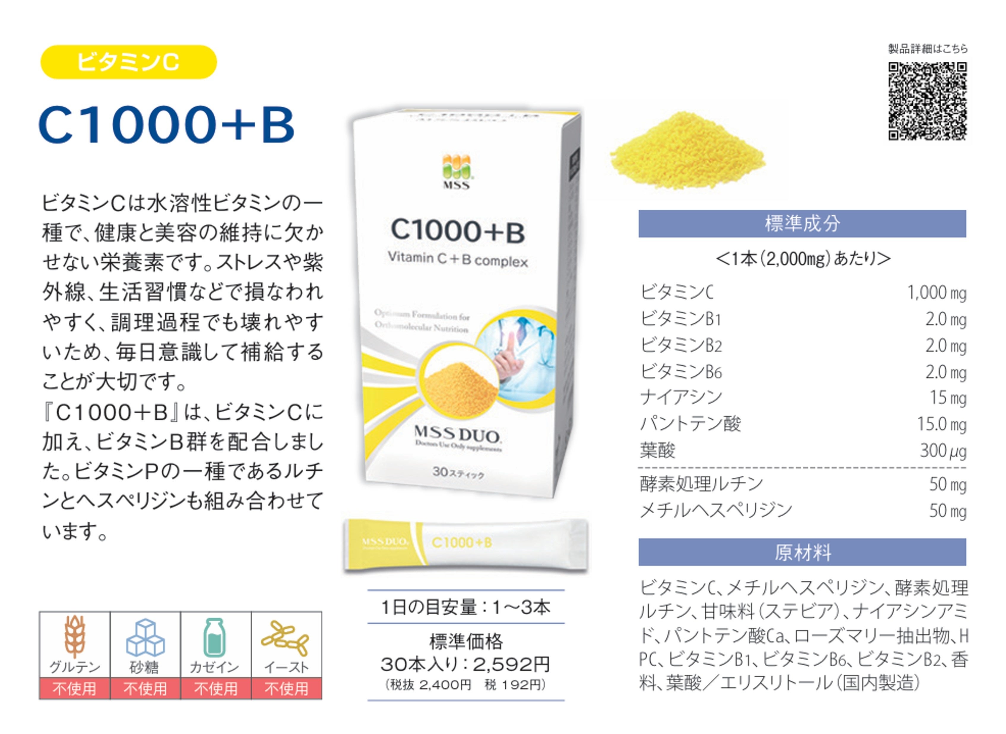 「ビタミンCのサプリメントは酸っぱくて苦手」、「苦くて毎日飲み続けるのは難しい…」などといった経験をおもちの方にも、MSSの『C1000+B』は「酸味が少なくて飲みやすい!」、「苦くないから毎日続けられる」と好評をいただいています。