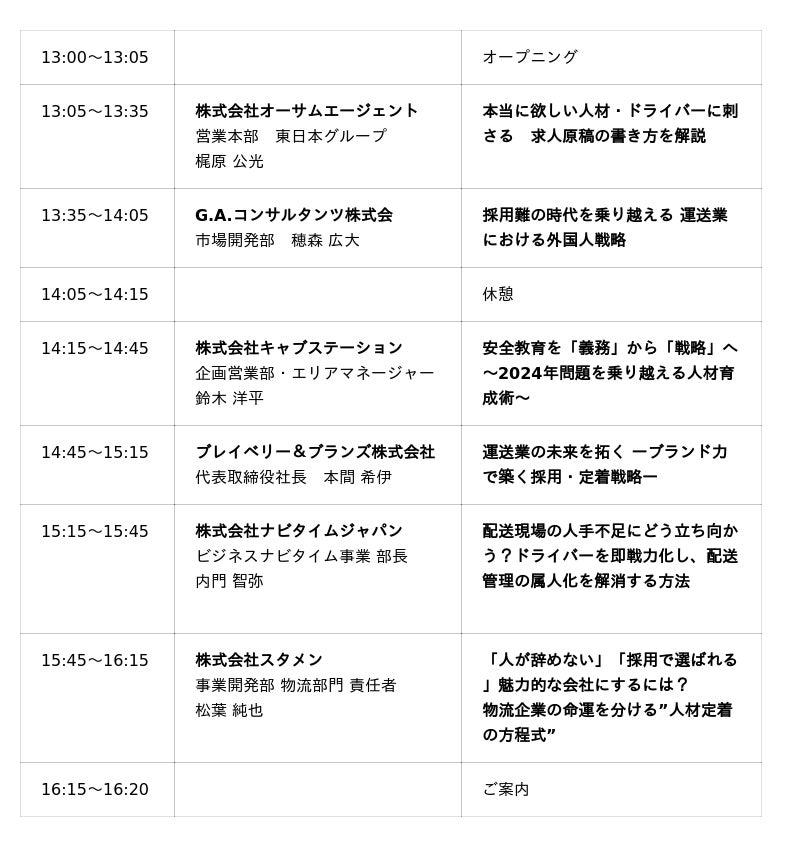 セミナータイトル:2024年問題を乗り越える!運送業の人材戦略~採用から定着、即戦力化までの実践ノウハウ~