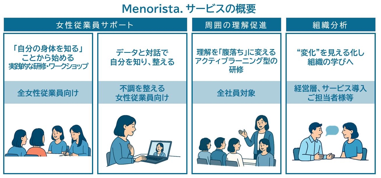 Menorista.(メノリスタ)」を、陽と人と共同で開発し、これまでに複数の企業で約100名に提供してまいりました。