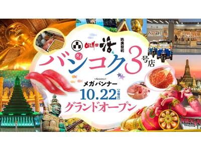 株式会社活美登利(本社:東京都品川区、代表取締役社長:土屋秀仁)が運営する「回し寿司 活/寿司活」は、2025年10月22日(水)、タイ・バンコク3号店として【メガバンナー店】を新規オープンします。