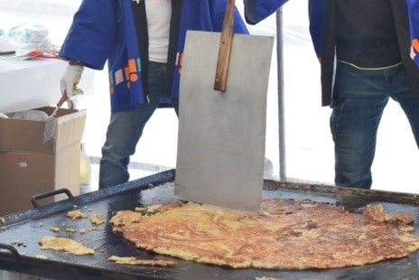 【JA兵庫六甲神戸西稲作経営部会】11月8日 米粉を使ったお好み焼き(直径約1mのお好み焼きのカット販売)