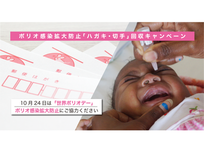 10月24日(金)は「世界ポリオデー」です。根絶まであと1%と言われているポリオですが、最後の一歩が遠く、昨年は紛争地域のガザで、25年ぶりに感染が認められてしまいました。途上国の子ども達にポリオをはじめ、はしかや破傷風などのワクチンを届け、子どもの命と未来を守る子どもワクチン支援活動を行う「認定NPO法人 世界の子どもにワクチンを 日本委員会」(以下JCV)では、ポリオ根絶に向けて感染拡大防止にさらに力を入れるべく、「ハガキ・切手回収キャンペーン」を10/24(金)から実施します。