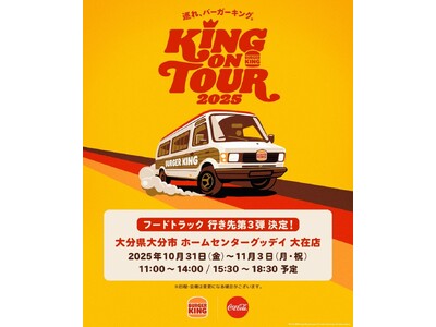 バーガーキング(R)による「KING ON TOUR 2025」第3弾として10月31日(金)から11月3日(月・祝)までの4日間、大分県初のバーガーキングがグッデイ大在店に登場します。