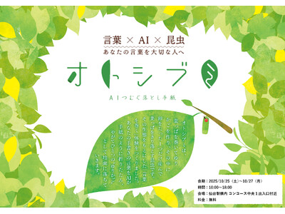 研究とポップカルチャーの融合を掲げるクリエイティブレーベルAcademimic(東京都渋谷区)は、日建設計総合研究所(東京都千代田区)とともに展開する「Ki Sci Iki(キサイイキ)」プロジェクトの第一弾として、言葉と昆虫、そしてAIの体験型インスタレーション『オトシブミ - AIつむぐ落とし手紙 -』を2025年10月25日(土)~27日(月)の10:00~18:00、仙台駅構内にて開催します。本プロジェクトは、都市の中で活用されていない空間を発掘し、アートや研究の発信の場として生かす社会実験的な試みです。公共空間を活用したい施設管理者や自治体と、研究や表現を通じて社会と関わりたい研究者・クリエイターをつなぐ場づくりを目指し、都市の余白を新しい価値へと変換していきます。
