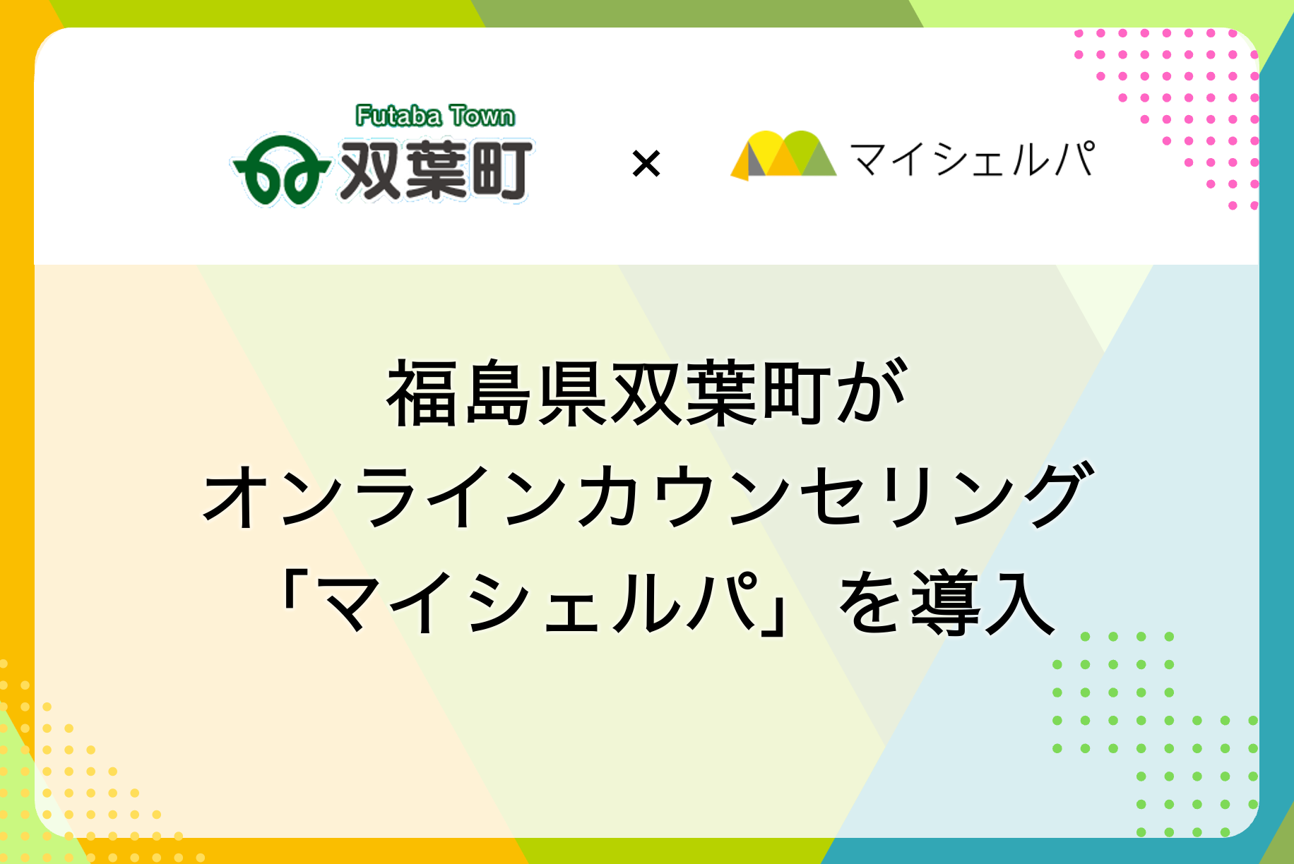 オンラインカウンセリングを提供する株式会社マイシェルパ(以下、当社)は、福島県双葉町(以下、双葉町)に、法人向けメンタルヘルスケア支援サービス「マイシェルパ」を提供します。双葉町では、町職員が臨床心理士や公認心理師によるオンラインカウンセリングを受けられます。
