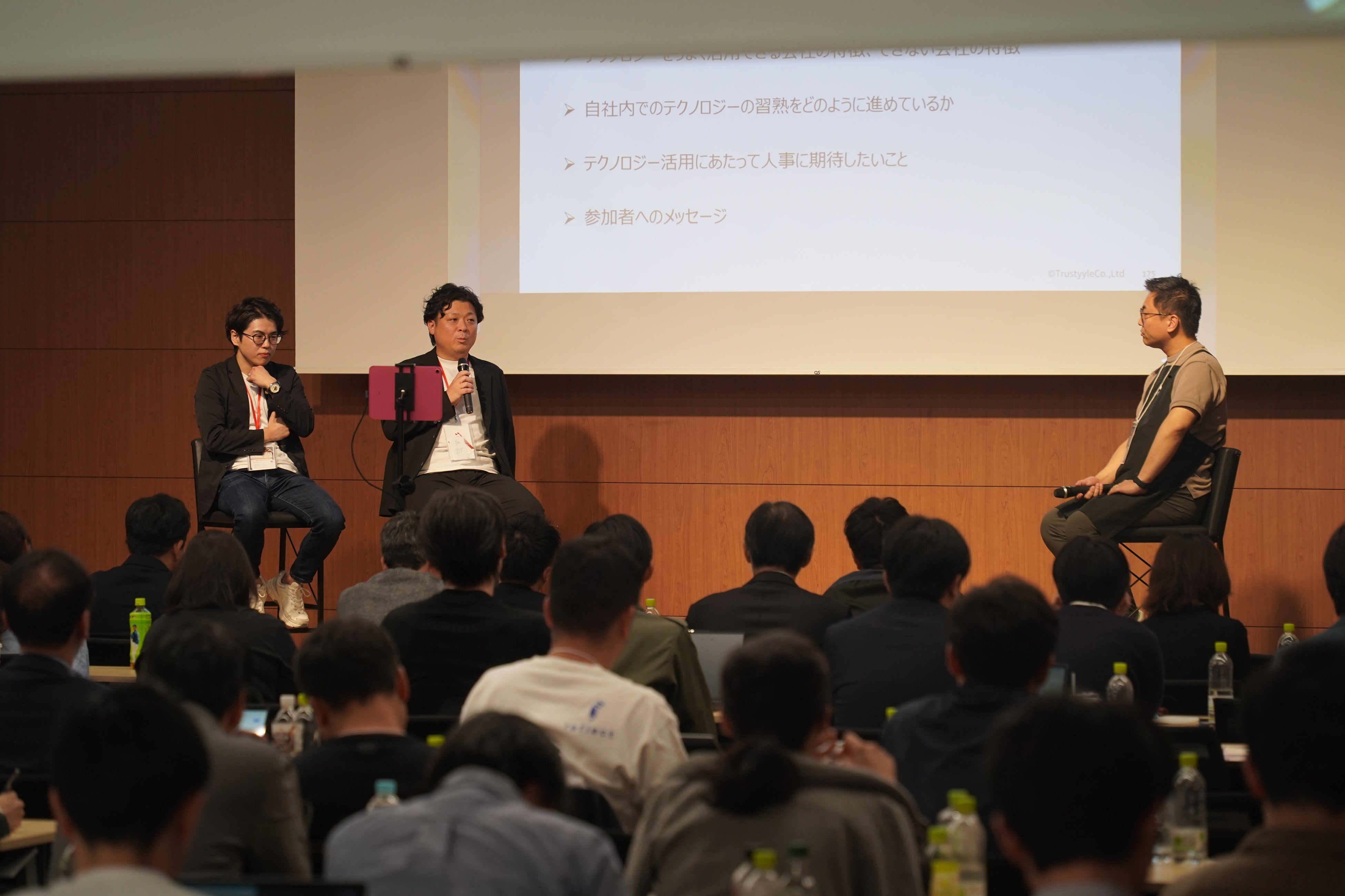 次のクロストークでは「人事としてのテクノロジー活用の進め方」「経営からの期待の変化」などのテーマが取り上げられました。太田氏から「人事の役割は社員に答えを与えることではなく、自ら考えるための“問い”を投げかけられる環境をつくること。皆さん自身は社員に問いを生み出せる存在になれているか」と参加者に問いかけがあり、「人事とは何者か」「自分は何者か」を見つめ直すこのメッセージは、多くの参加者に深い余韻を残しました。