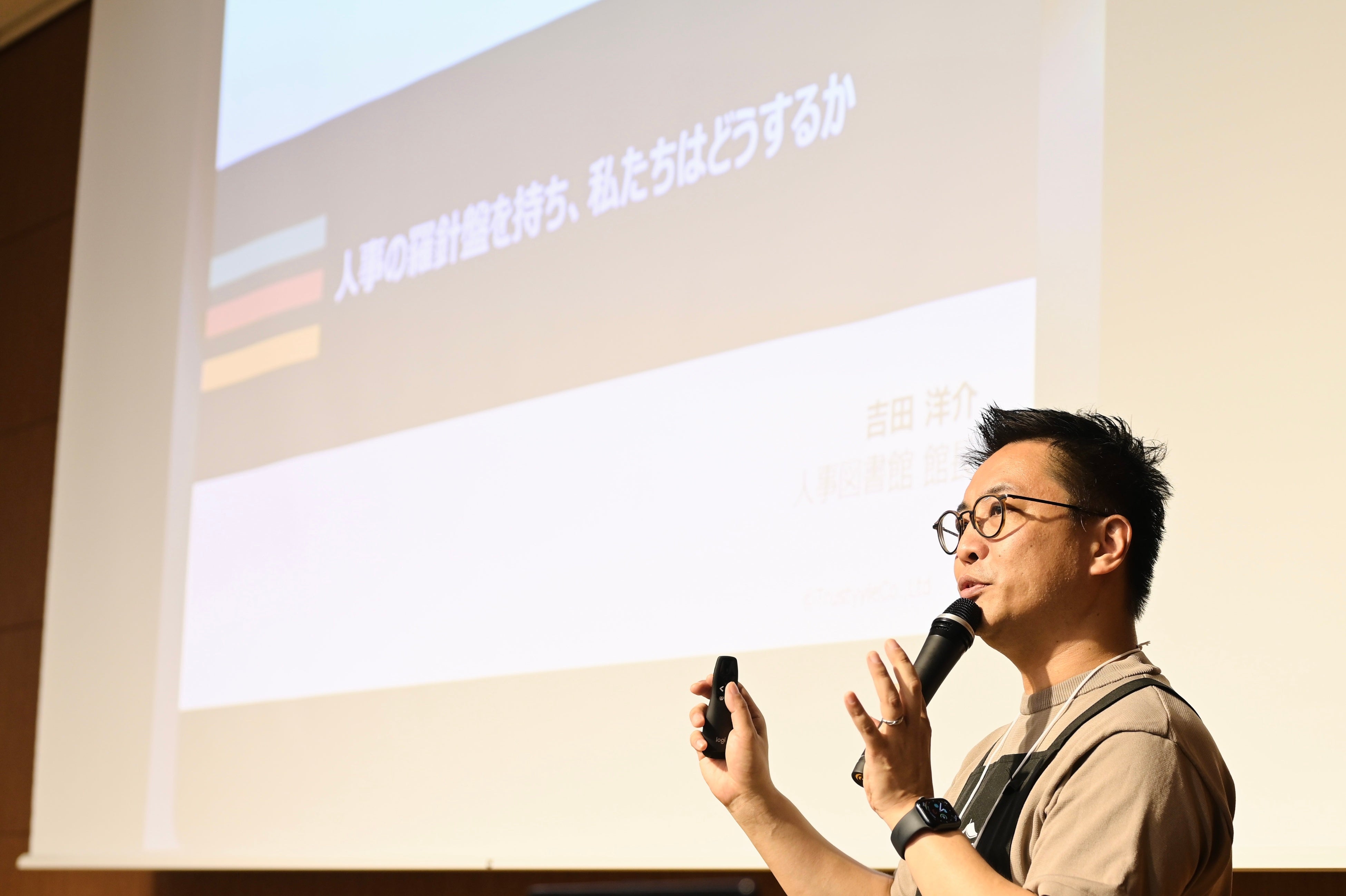 最後に、人事図書館の館長である吉田より「人事部としてどうするかではなく、私がどうあるかからすべては始まる」というメッセージが送られました。勇気をもって、リスクを負って最初の一歩を踏み出す。この問いを胸に置きながら「私が」を大切に進んでいきたいという思いに、多くの参加者の共感をいただき、温かい拍手に包まれて幕を閉じました。