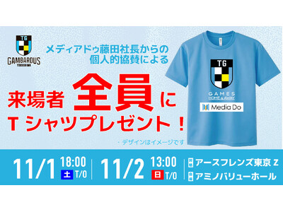 2025年11月1日(土)2日(日)にアミノバリューホールで開催されるアースフレンズ東京Z戦において、メディアドゥ藤田社長からの個人的協賛により、オリジナルTシャツを来場者全員へお渡しできるよう合計4,000枚を配布することとなりましたので、お知らせいたします。