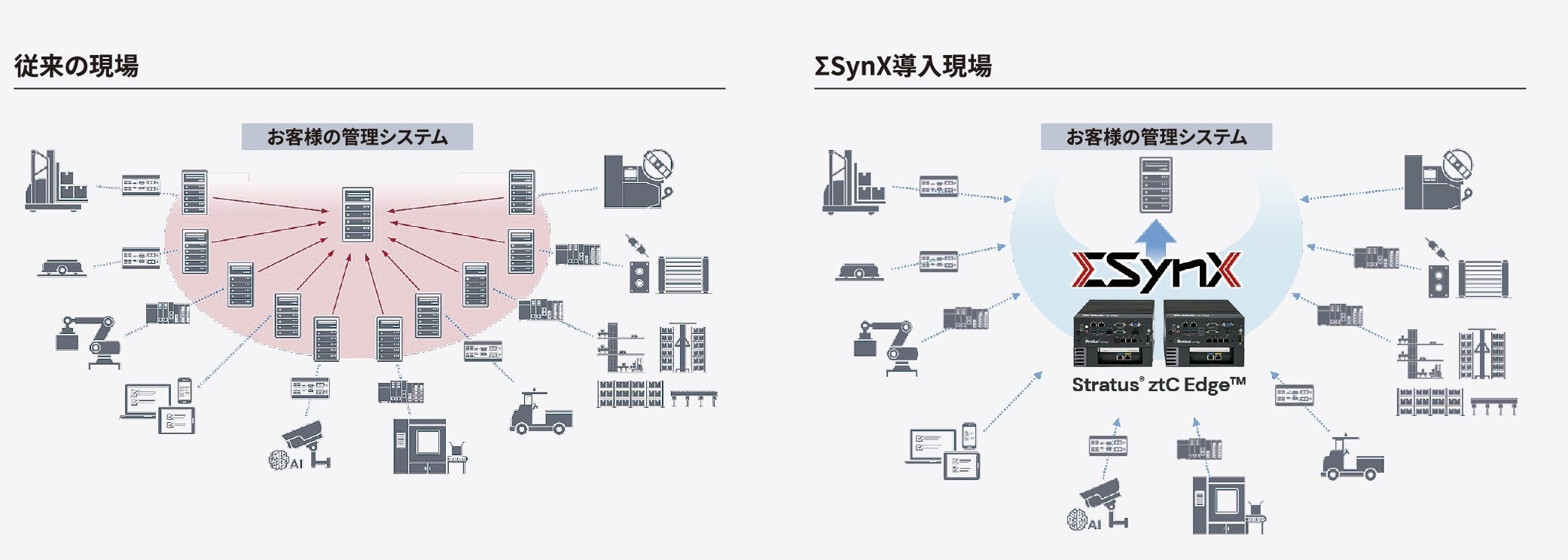 少子高齢化による人手不足は、「2024年問題」としてクローズアップされるなど、物流分野でも深刻な問題です。三菱重工グループはその問題に対応するため、ピッキング※1工程を自動化する国内初のソリューションを開発しました。これは、さまざまな機械を同調・協調する標準プラットフォームである「ΣSynX(シグマシンクス)」※2上に実装されています。そして、そのコントローラーとしてペンギンソリューションズの「止まらない」エッジコンピューティング「Stratus ztC Edge」が標準プラットフォームとして採用されました。「Stratus ztC Edge」は産業用途に設計された、ゼロタッチ※3運用が可能な無停止サーバーで、これにより、専用のサーバー室が設置できないような倉庫という環境でも無停止の運用が実現できます。