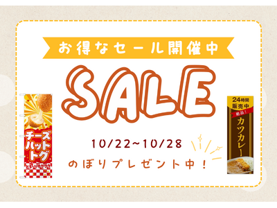 のぼりプレゼント!冷凍モッツァレラチーズ ハットグ・大盛りカツカレーをご購入いただいたお客様にのぼりをプレゼント!