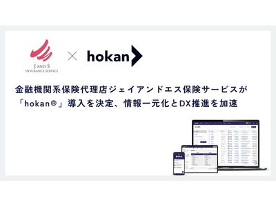 「適正な営業活動」と「組織の強固な監査体制」を実現するクラウド型保険代理店システム「hokan(R)︎」を提供する株式会社hokan(ホカン、本社:東京都中央区、代表取締役社長:横塚 出、以下:当社)は、ジェイアンドエス保険サービス株式会社(本社:東京都中央区、代表取締役社長:日野 夏樹、以下:ジェイアンドエス保険サービス社)への「hokan(R)︎」導入が決定したことをお知らせいたします。