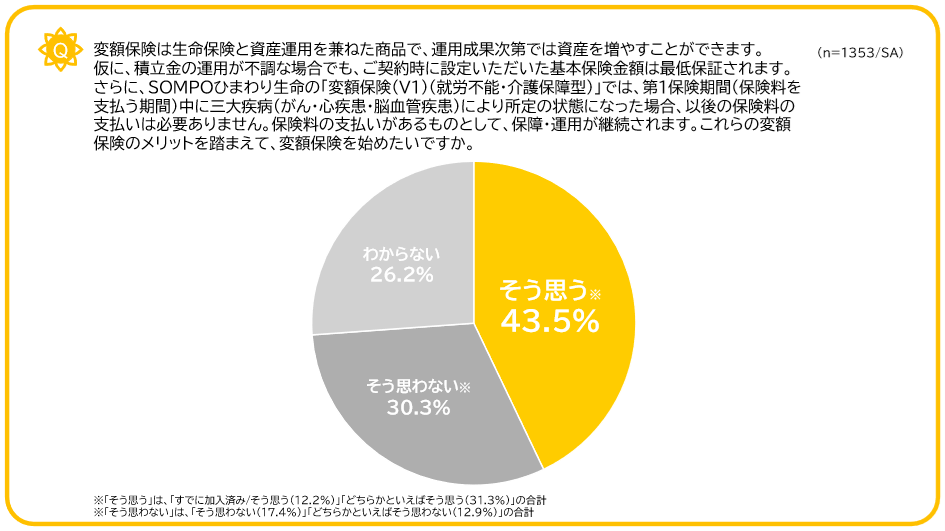 一方で、「損をしそう」「何を信じればいいか分からない」といった不安も根強く、保障と資産形成を兼ね備えた“安心して始められる資産形成手段”として、変額保険への関心が高まっている可能性があることも明らかになりました。