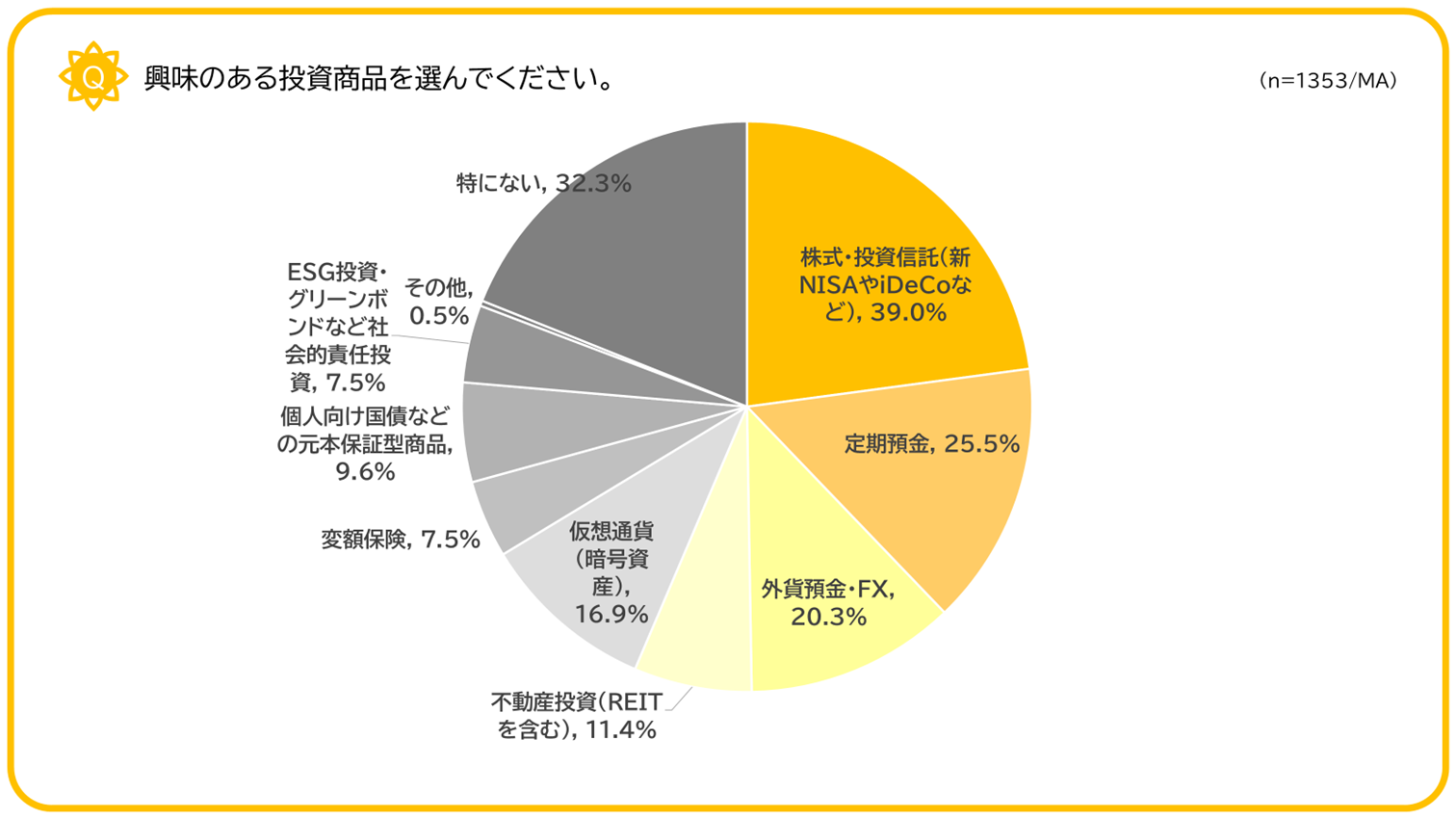 こうした状況の中、「株式・投資信託(新NISAやiDeCoなど)」(39.0%)が上位にランクインした。