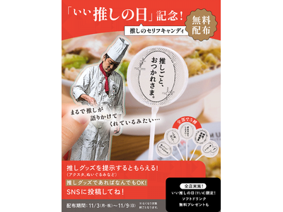 11月4日限定・全店にて、推し活グッズ提示でソフトドリンク一杯プレゼント!さらに、思わず撮りたくなる推しのセリフキャンディがもらえる店舗も!