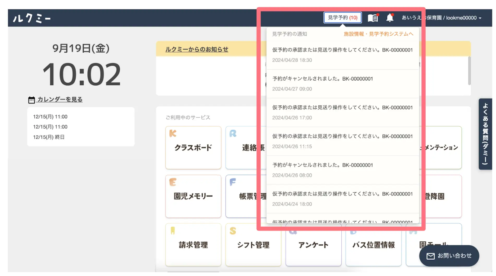 参考:「ルクミー」上での見学予約通知確認イメージ