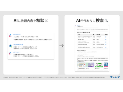 人とAIが協働する社会の実現に向けてAX(AIトランスフォーメーション)を推進するランサーズ株式会社(本社:東京都渋谷区、代表取締役社長 CEO:秋好 陽介、東証グロース:4484、以下「ランサーズ」)は、ビジネスマッチングプラットフォーム『ランサーズ』において、業界初(※)となる新機能「AIエージェント検索」を提供開始いたします。
