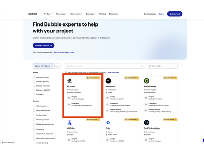 参考公式ページ:https://bubble.io/experts-directory/agency-freelancer?page=2