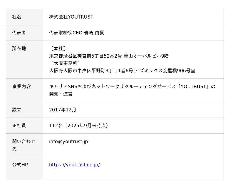 日本のキャリアSNSおよびネットワークリクルーティングサービスの「YOUTRUST」を開発・運営する株式会社YOUTRUSTの代表取締役CEO 岩崎 由夏が、一般社団法人 新経済連盟(所在地:東京都港区、代表理事:三木谷浩史)が主催する「JX Awards 2025」において、選考委員特別賞を受賞しました。