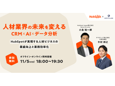 HubSpot Japan株式会社(本社:東京都千代田区、代表:キャサリン ビューカー、以下「HubSpot社」)と、企業のマーケティング活動を支援するナウビレッジ株式会社(本社:東京都港区、代表取締役社長:今村 邦之、以下 「ナウビレッジ」)は、この度、人材業界向けセミナー「人材業界の未来を変える ― CRM × AI × データ分析」を2025年11月5日(水)に開催いたします。