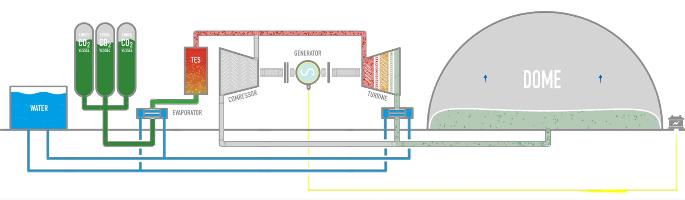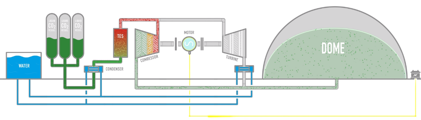 エナジードームは、イタリア・ミラノを拠点とする企業で、革新的なCO2バッテリー技術を開発・提供しています。イタリア・サルデーニャ島において世界初のCO2バッテリー商用プラント(出力20MW、蓄電容量200MWh)の運転を開始しており、各国におけるCO2バッテリー技術の導入を進めています。