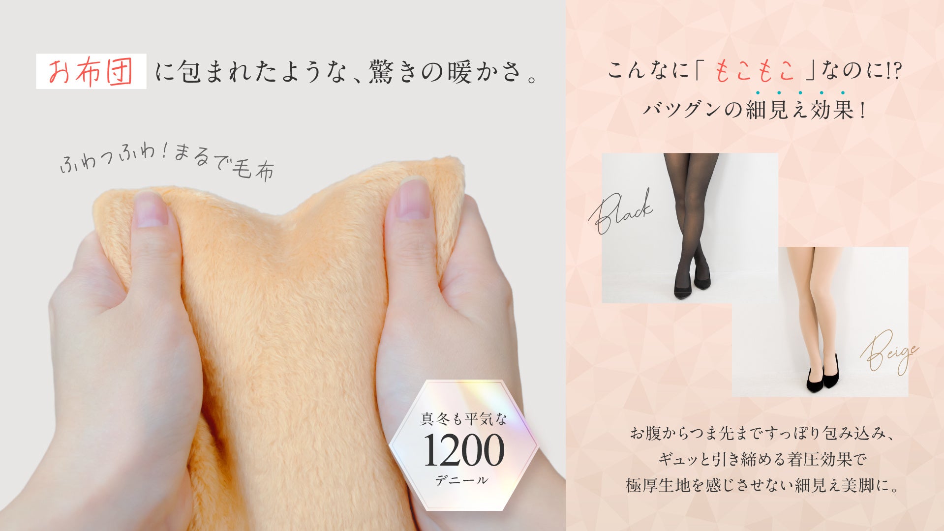 起毛素材なのに、不自然じゃない。”肌が透けてる感”のナチュラルさでファッション性と防寒性を両立し、累計販売個数18,000個突破