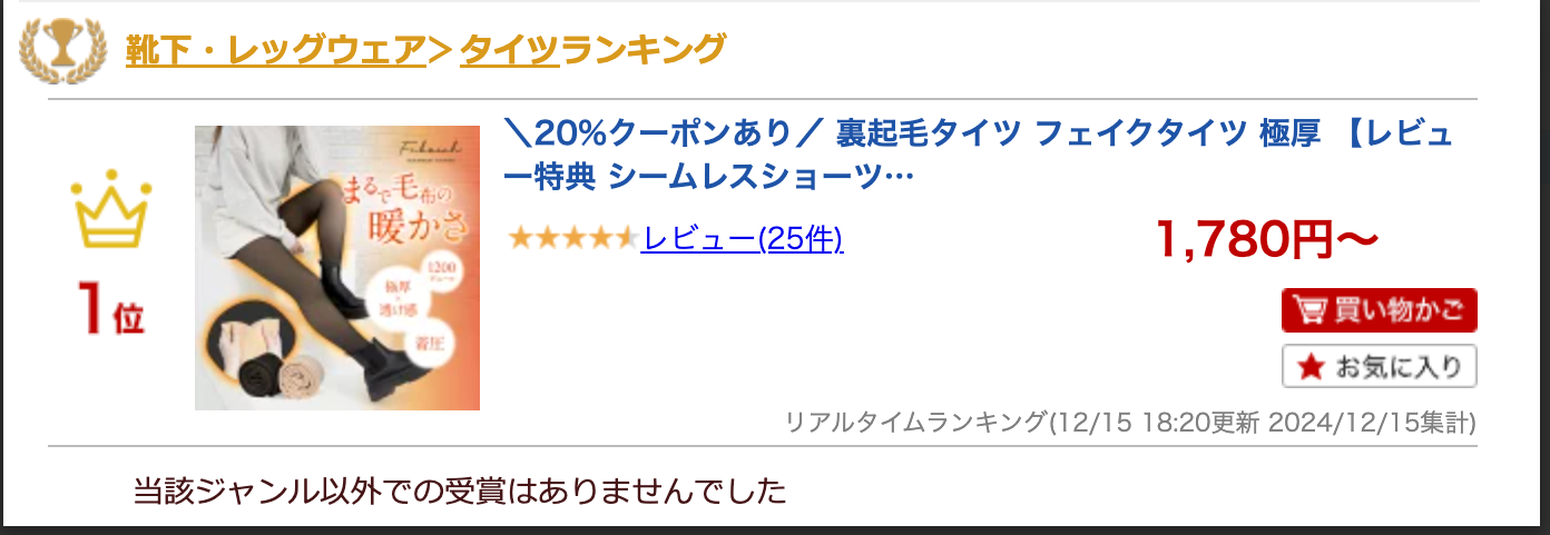 Fabrich裏起毛タイツは、Amazonランキングレディースタイツ部門、楽天市場リアルタイムランキング タイツ部門でそれぞれ1位を獲得し、おしゃれを楽しみながら、肌寒くなる季節を乗り越えたい女性から圧倒的支持をいただいております。