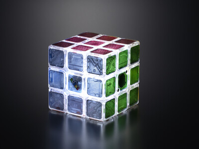 本商品は、マジックミラーのような構造により普段は鏡面のように見えるキューブが、光ることで色が出現する、これまでにないギミックを搭載した革新的なルービックキューブです。