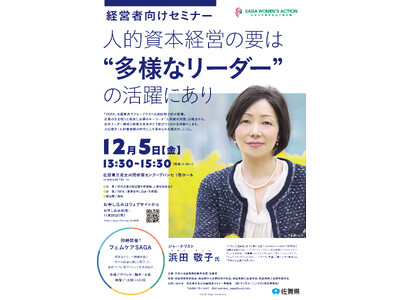 ダイバーシティ&インクルージョン・人的資本経営を軸に人材開発・組織開発を支援する株式会社サイズラーニング(本社所在地:福岡県中央区、代表取締役:高見真智子)は、この度、佐賀県「女性活躍推進セミナー委託業務」を受託し、佐賀県内企業や団体の経営者・管理職・人事担当者等を対象に、元AERA編集長/元Business Insider Japan統括編集長のジャーナリスト、浜田敬子氏をゲストに迎えたセミナー「人的資本経営の要は“多様なリーダー”の活躍にあり」を開催します。