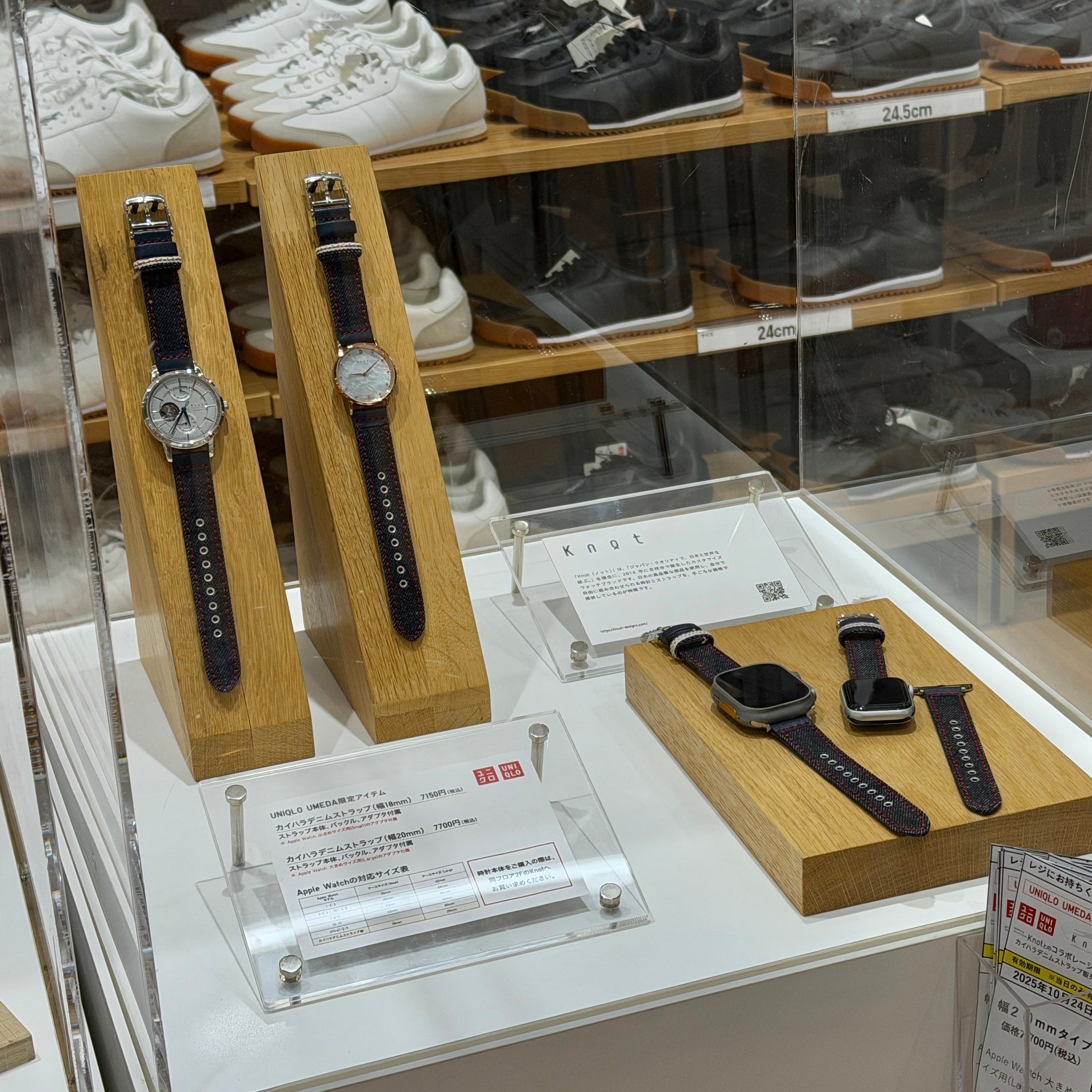 2025年10月24日にオープンしたUNIQLO UMEDAと日本製腕時計ブランド「Maker’s Watch Knot」とのコラボレーションが実現。オリジナルストラップが100本限定で登場。