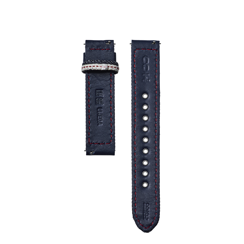 業界トップシェアを誇る「カイハラデニム」を使用し、レザーやステッチカラー、リベットなどデニムらしい要素を散りばめた、こだわりが詰まったストラップです。