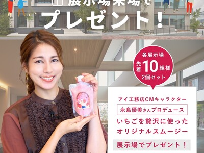 「アイパーク米子」オープンによるアイ工務店の全国47都道府県への進出達成とフリーキャスターの永島優美さんのアイ工務店CMキャラクター就任を記念し、全国の住宅展示場で特別キャンペーンを実施することが決定しました。11月1日(土)~3日(月)の3日間限定で全国の展示場へWEB予約来場の方へCMキャラクター永島優美さんプロデュースのいちごを贅沢に使ったオリジナルスムージー「CRAFT SMOOTHIE(TM)」をプレゼント!各展示場先着10組さまとなっておりますので、ぜひお早目にご予約ください