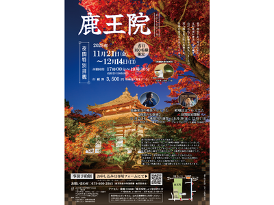 覚雄山鹿王院(京都市右京区)は、2025年11月21日(金)から12月14日(日)までの期間、夜間特別拝観を実施します。