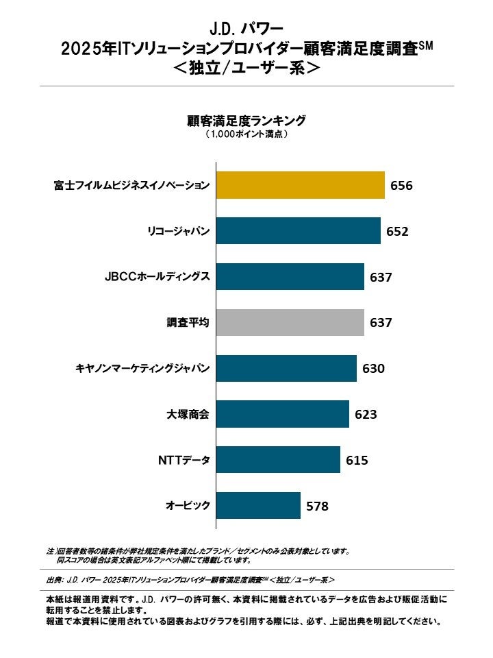 J.D. パワー 2025年ITソリューションプロバイダー顧客満足度<独立/ユーザー系>No.1を発表
