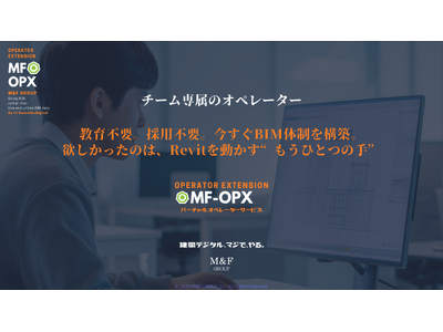 M&F Group(本社:東京都江東区、代表:守屋 史章、守屋 正規)は、建設業界の深刻なBIMオペレーター不足とコスト増大の課題を解決するため、場所にとらわれずオンラインで活動するBIMエキスパートが業務を支援する「バーチャルオペレーター OPX」の提供を開始しました。 本サービスは、採用や教育、高額なソフトウェアライセンスの費用をかけることなく、即戦力となるBIMチームを構築できる新しい形の業務委託サービスです。